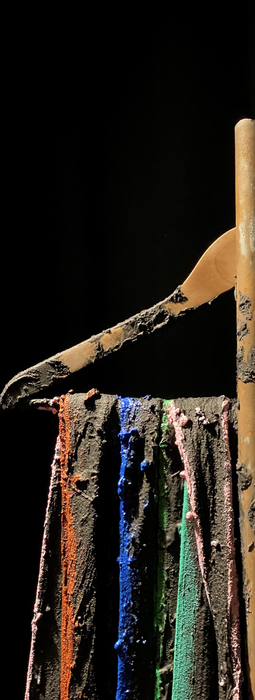 Dedicated to my father, this piece is an homage to his ultimate hallmarks: ties. In all modesty, I would gift him the most eccentric ones, those he would wear the most, salvaged from the various thrift shops around Hollywood. He had all his ties in plain sight, hung on a pair of hangers. He liked being able to go through all of them and always pick the one that perfectly mismatched his outfit.